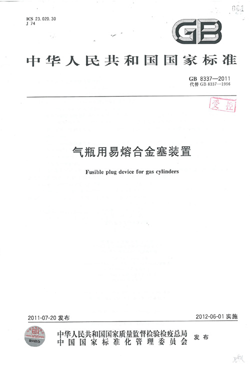 (主持)GB8337-2001氣瓶用易熔合金塞裝置